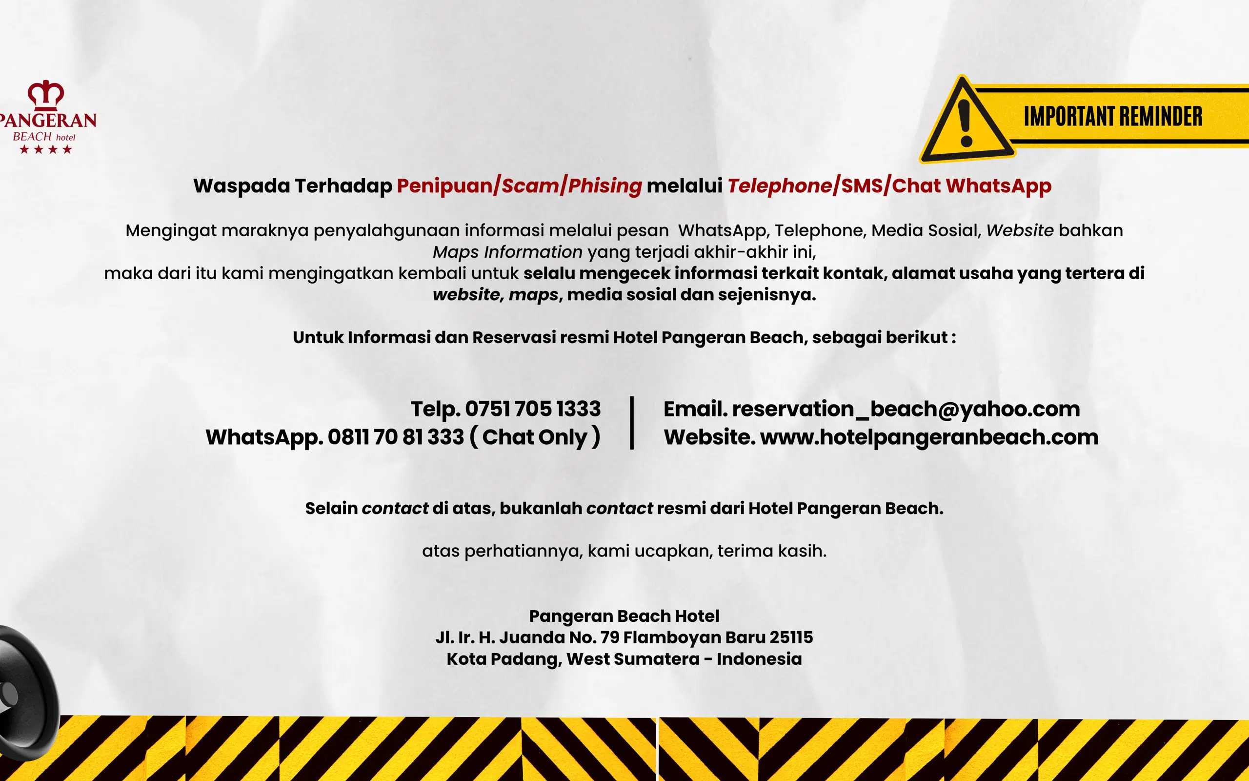 Terletak di tepi Pantai Padang yang memesona, Hotel Pangeran Beach adalah hotel bintang 4 yang menghadirkan kenyamanan modern dengan sentuhan budaya Minang. Dengan lokasi strategis hanya beberapa menit dari pusat kota Padang, hotel ini menjadi pilihan ideal bagi wisatawan bisnis maupun liburan.